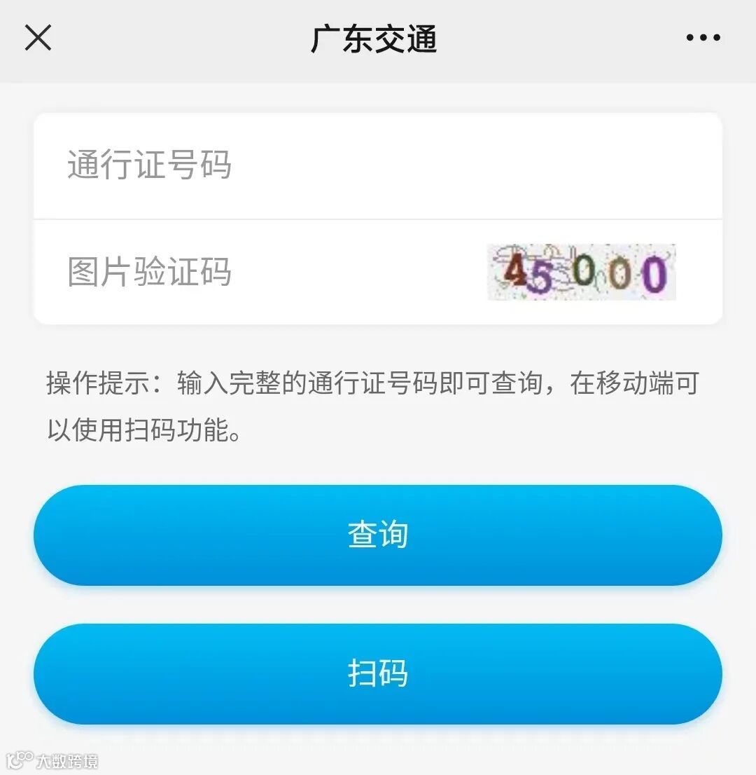 3.输入“通行证号码”及“图片验证码”即可查询,在移动端可以使用扫码功能进行查询。