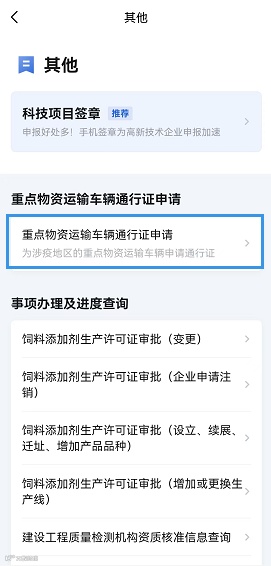 3.选择“重点物资运输车辆通行证申请”。见下图: