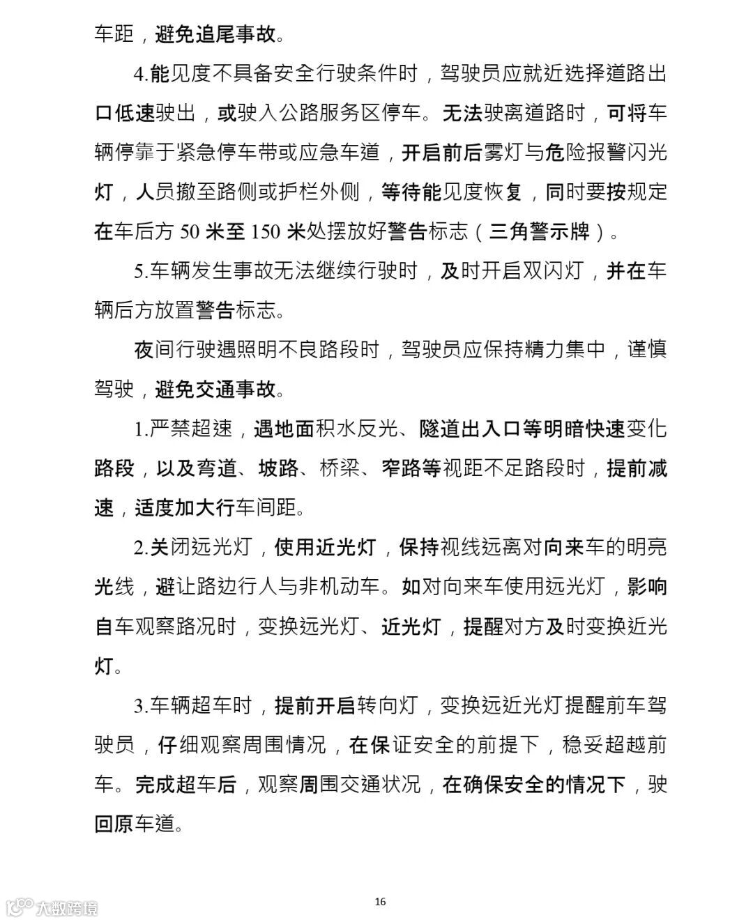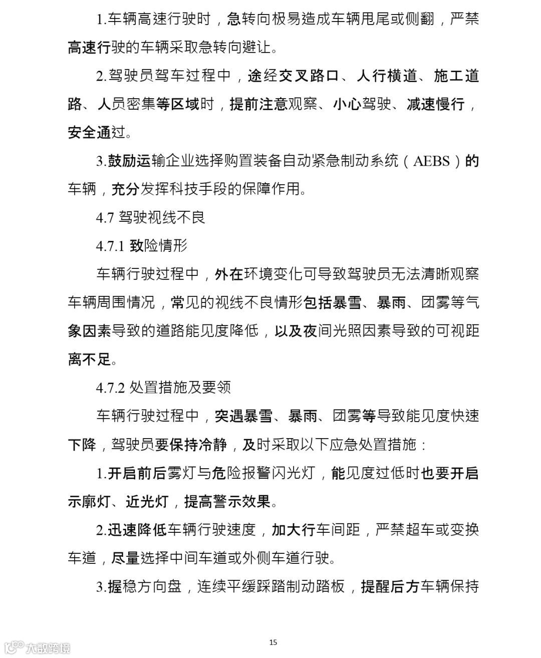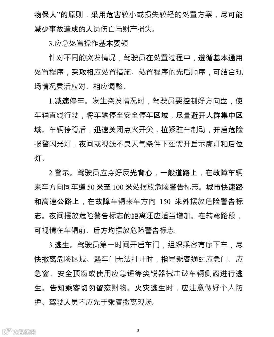 为深入贯彻落实党中央、国务院关于安全生产的决策部署,深刻汲取事故教训,提升道路运输驾驶员应急驾驶操作能力,部组织编写了《道路运输驾驶员应急驾驶操作指南(试行)》。现印发给你们,请积极宣贯推广,督促指导辖区内道路运输经营者学习借鉴,加强道路运输驾驶员应急驾驶技能教育培训,不断提升驾驶员应急处置能力。