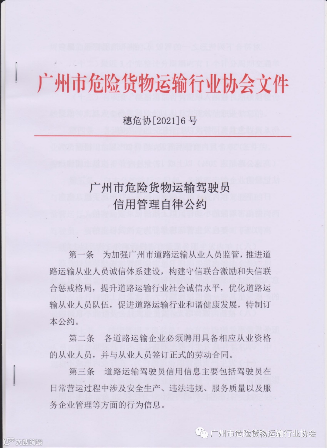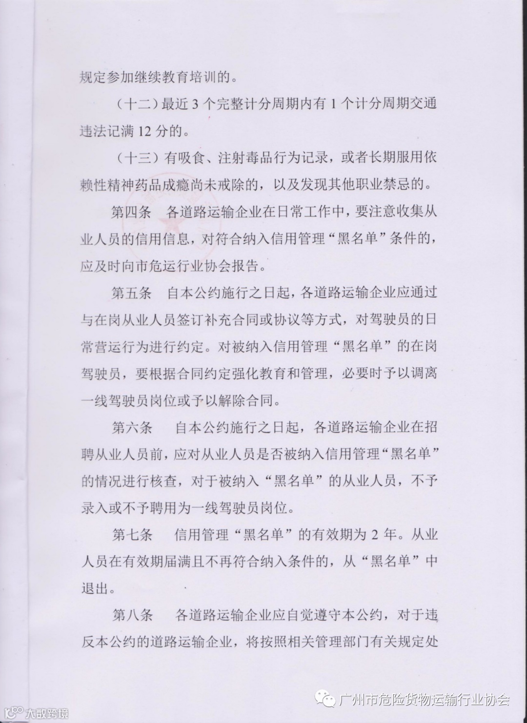导读:广州市危险货物运输驾驶员信用管理自律公约