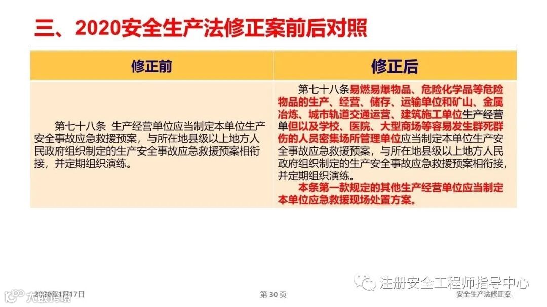 第七十八条修订,特别希望21年新修订安法尽早发布。这样非高危行业的企业就不用被应急预案折磨了。本法第三条讲的是重点遏制重特大事故,非高危行业发生重特大事故概率很小。应急预案对于非高危行业企业而言其实并没有多大实际意义,做好现场处置方案和演练好就行了。为这一条点赞!!!