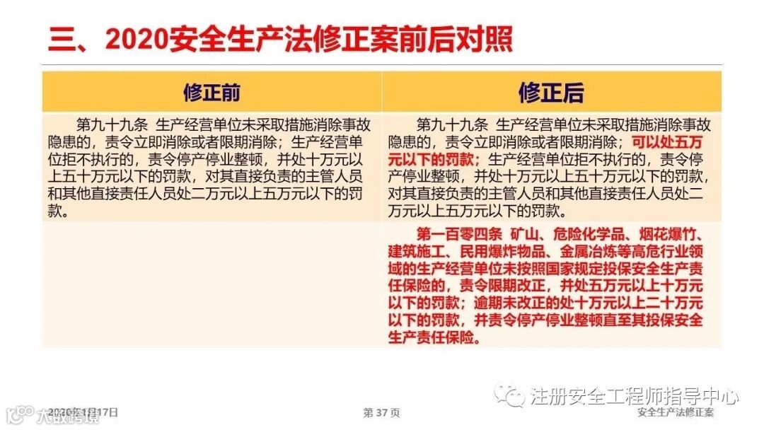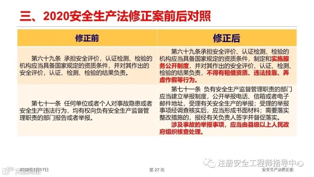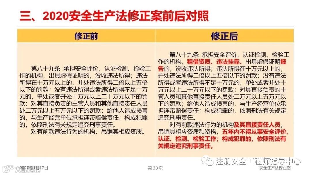 新修订的安全生产法会给企业、个人以及执法部门带来什么变化,是否解决了我们关注的问题?我们先看一下修改内容对比:
