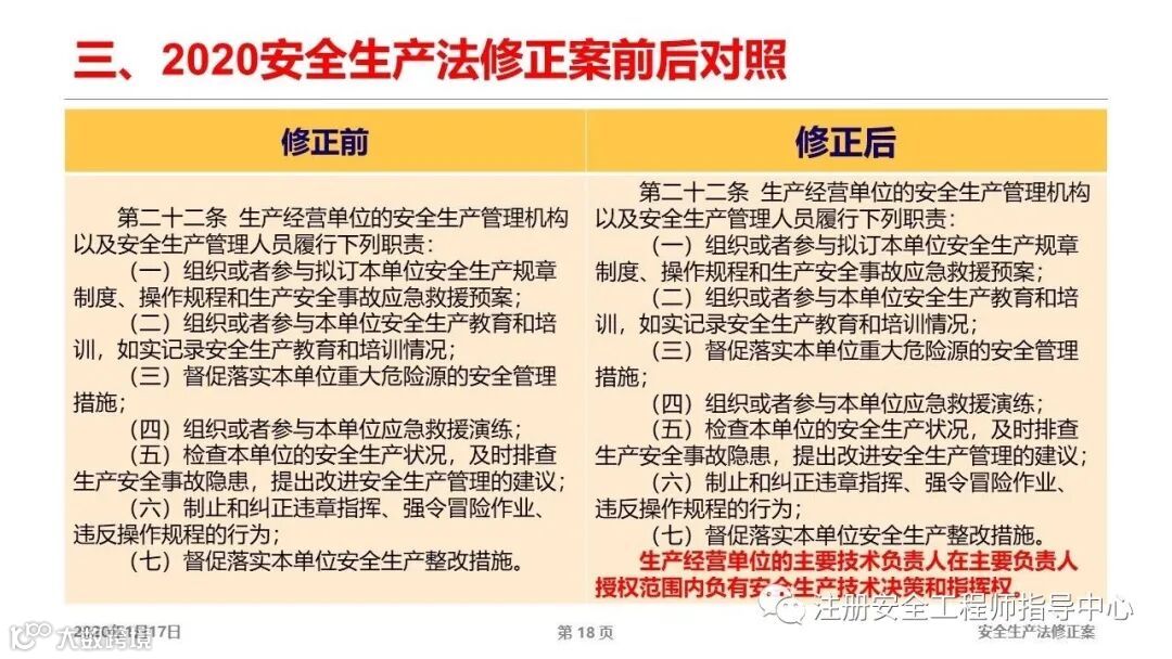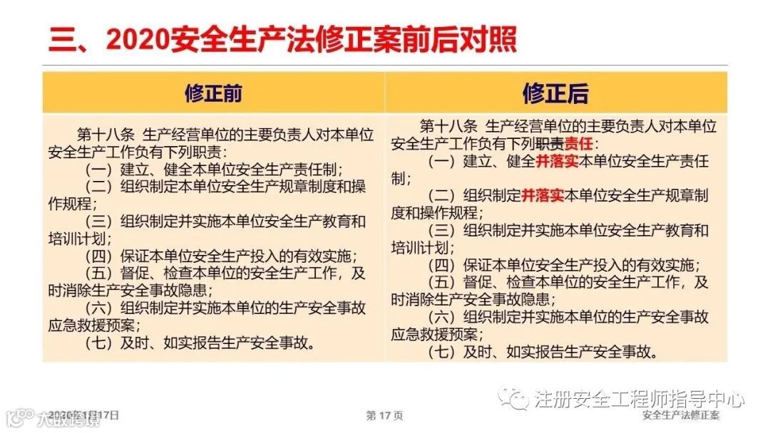 第十八条修订,重点是两个字:落实。安全生产责任制写的再详细,不落实全是空。这是我们的现状,不落地,所有强调落实。具体怎么落实?