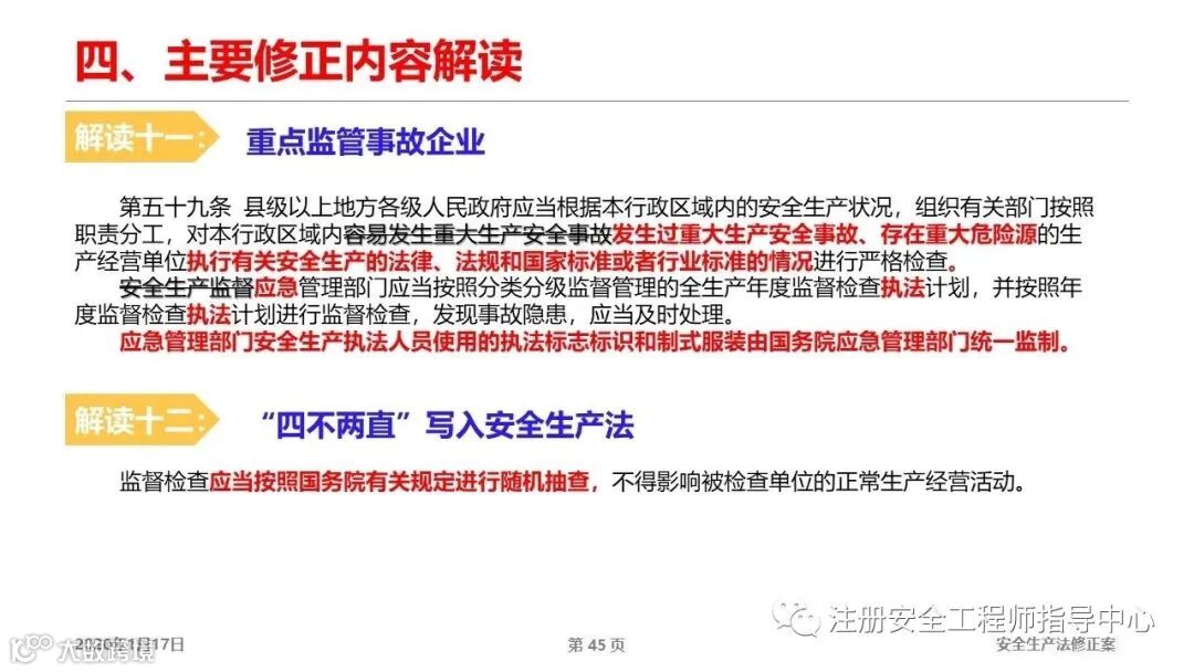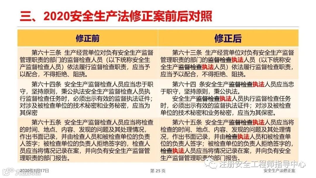 第六十三、四、五条修订,变检查为执法。减少检查,少检查企业作业,少干涉企业怎么管安全,突出企业主体责任,出了问题严格处罚!“少即是多”