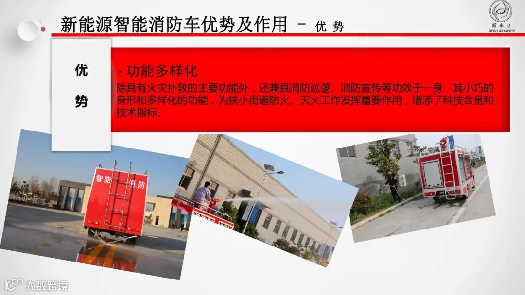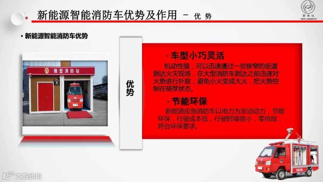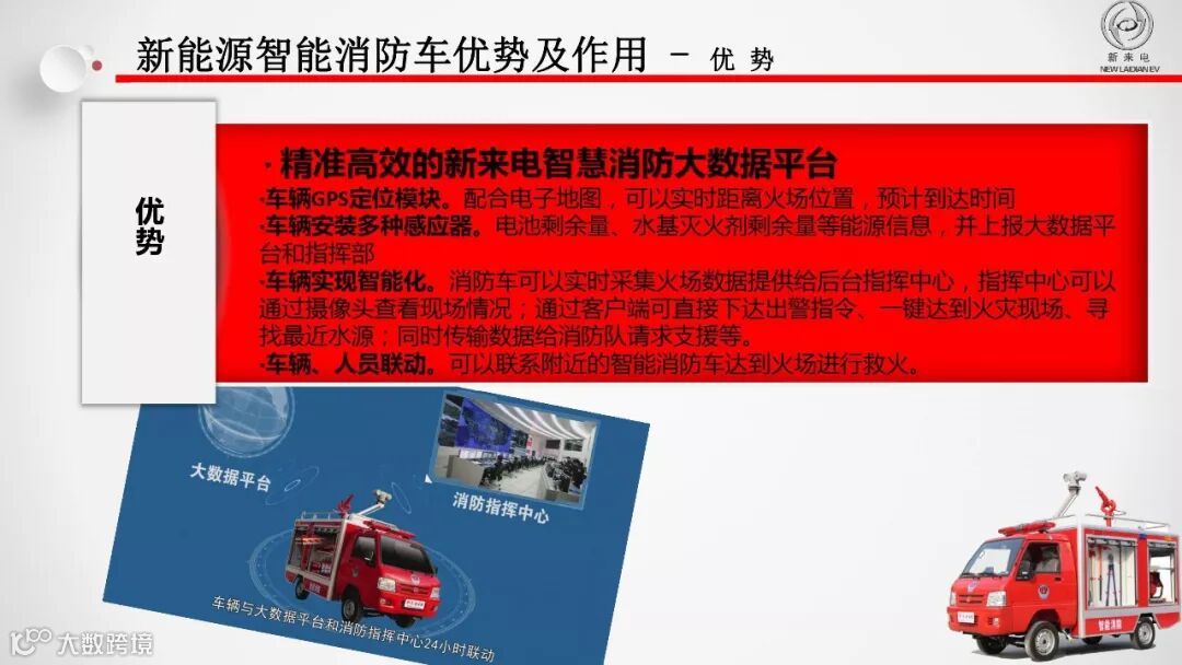 公司新能源智能消防车产业技术先进,利用大数据云平台精准定位,快速到达火灾现场,电力驱动低碳安全环保、政策支持,社会意义重大。公司将坚守“专注科技民生,责任重于泰山”经营理念,勇于创新,锐意进取,努力打造成为中国最大的新能源智能消防车生产基地。