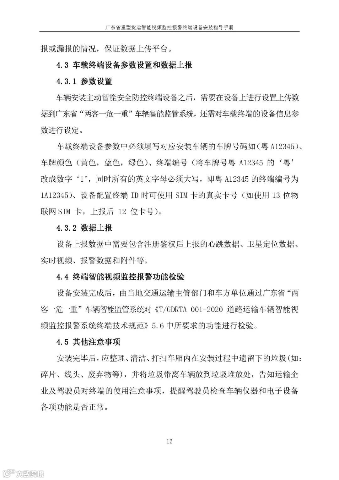 导读:广东省重型货运智能视频监控报警终端设备安装指导手册
