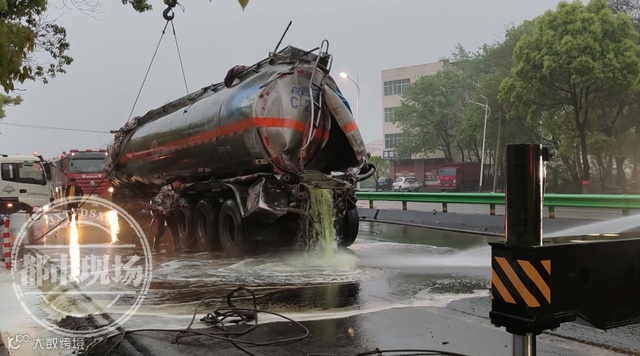 小编点评:据悉,是两车发生碰撞,消防正在用砂石对溢出的危化品覆盖中和。在此,小编提醒驾驶员,如果危化品运输车辆发生泄露,不能盲目自行解决,一定要马上通过各种渠道通知相关部门处理;为保证人身安全,要尽量远离出事车辆,现场禁止烟火。