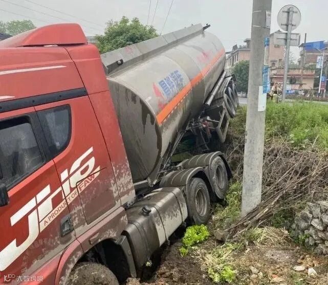 事件:3月27日,广西全州石塘往两河方向一油罐车与一拖挂车发生摩擦,油罐车冲下路基,两车不同程度受损,所幸无人员伤亡!