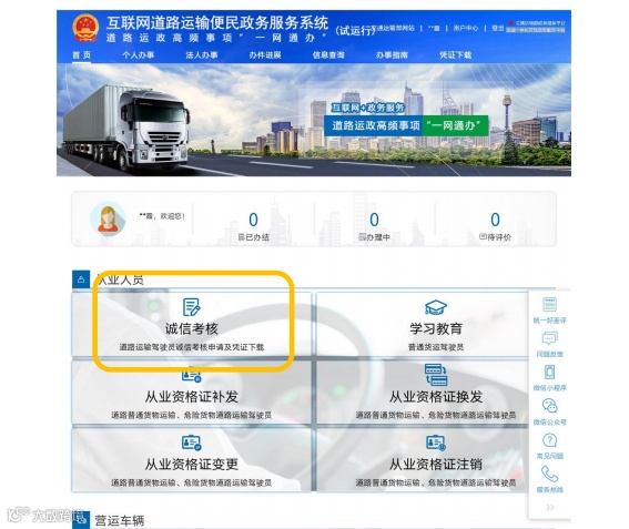 导读:普通货运车辆异地年审、从业资格证换发、诚信考核....上这个系统“一网通办”