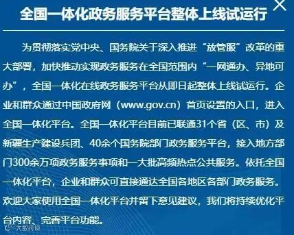 国家政务服务平台是中国政府网主导的全国一体化平台