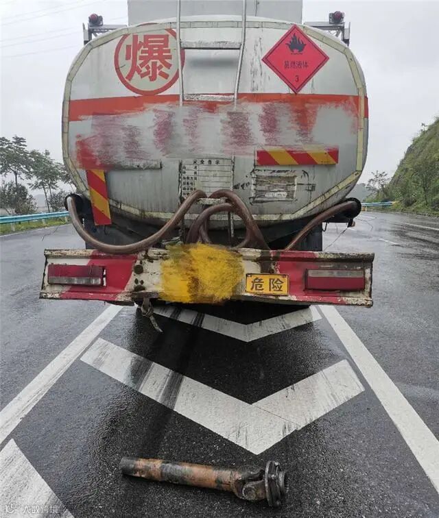 油罐车高速上传动轴掉落