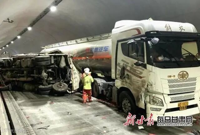 隧道内危化品罐车遭碰撞