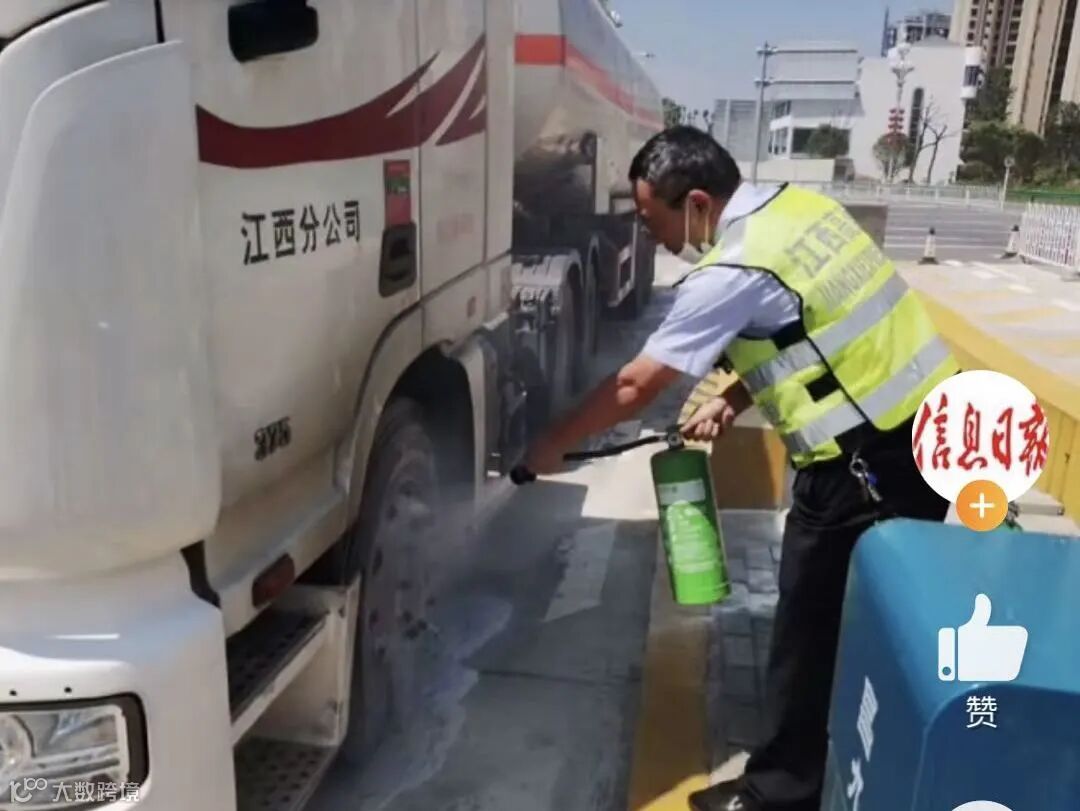 7月22日,在昌九高速沙河收费站,一辆冒着浓烟的油罐车直接驶入车道,当班收费工作人员见状及时出手相助,扑灭火情。当日上午10时20分左右,该油罐车驶入收费站出口110车道时,车辆前轮有一股浓烟冒出。收费站工作人员发现后,一边立即大声叫停司机,一边提起岗亭的灭火器冲向车辆,对准起火部位喷射。同时,还有工作人员赶紧跑到车后,拦截紧随其后的车辆暂勿靠近。工作人员又拎来几桶水细心地为轮胎降温。最终,经过20分钟紧急救援,成功将险情排除。