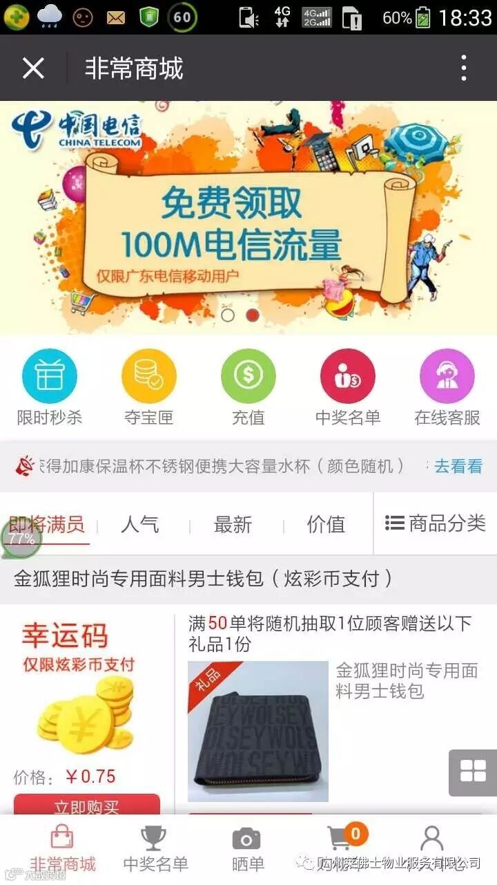 100M流量免费送!通过我司公众号菜单进入“非常商城”,在商城首页活动BANNER图,就可以找到活动页面。