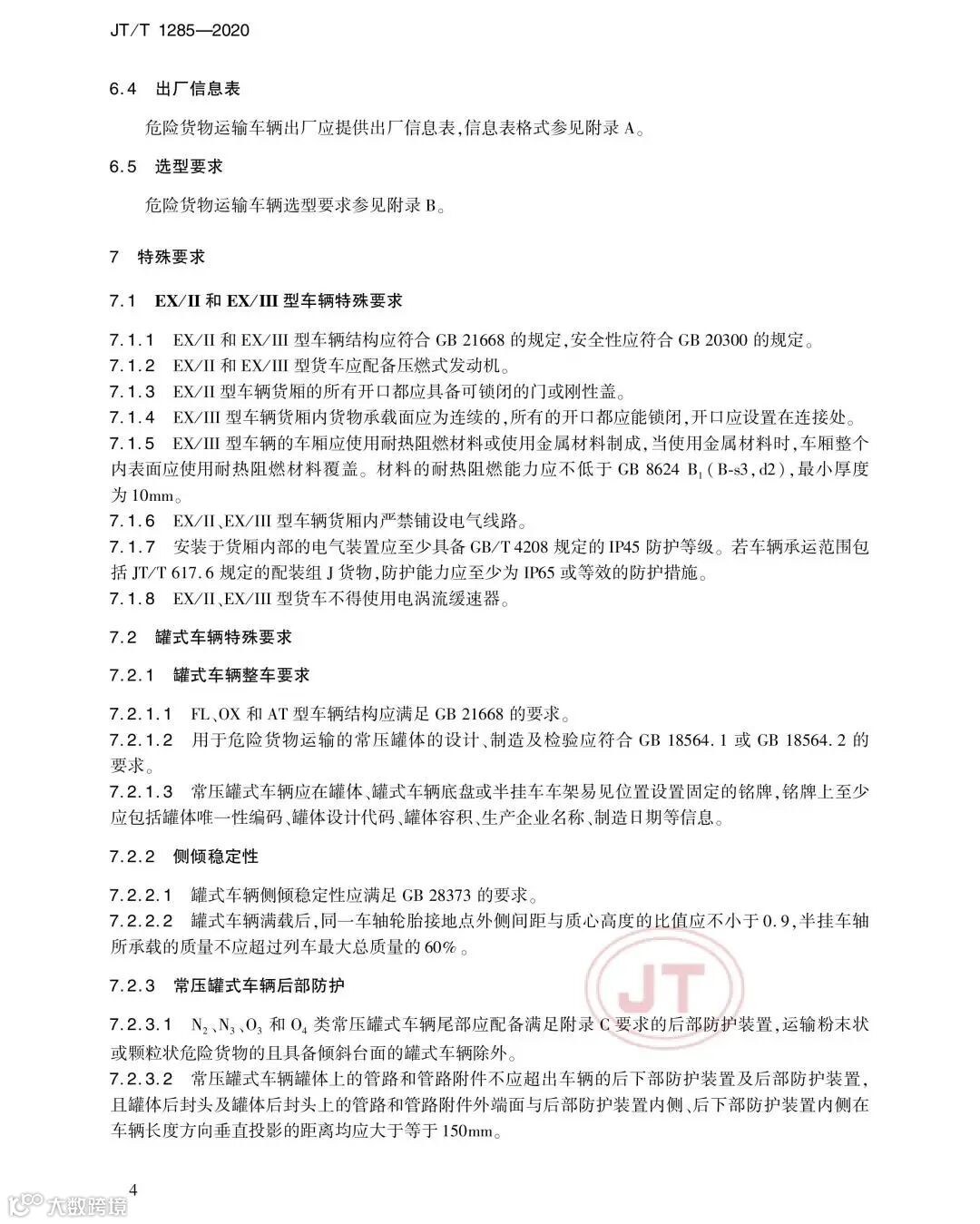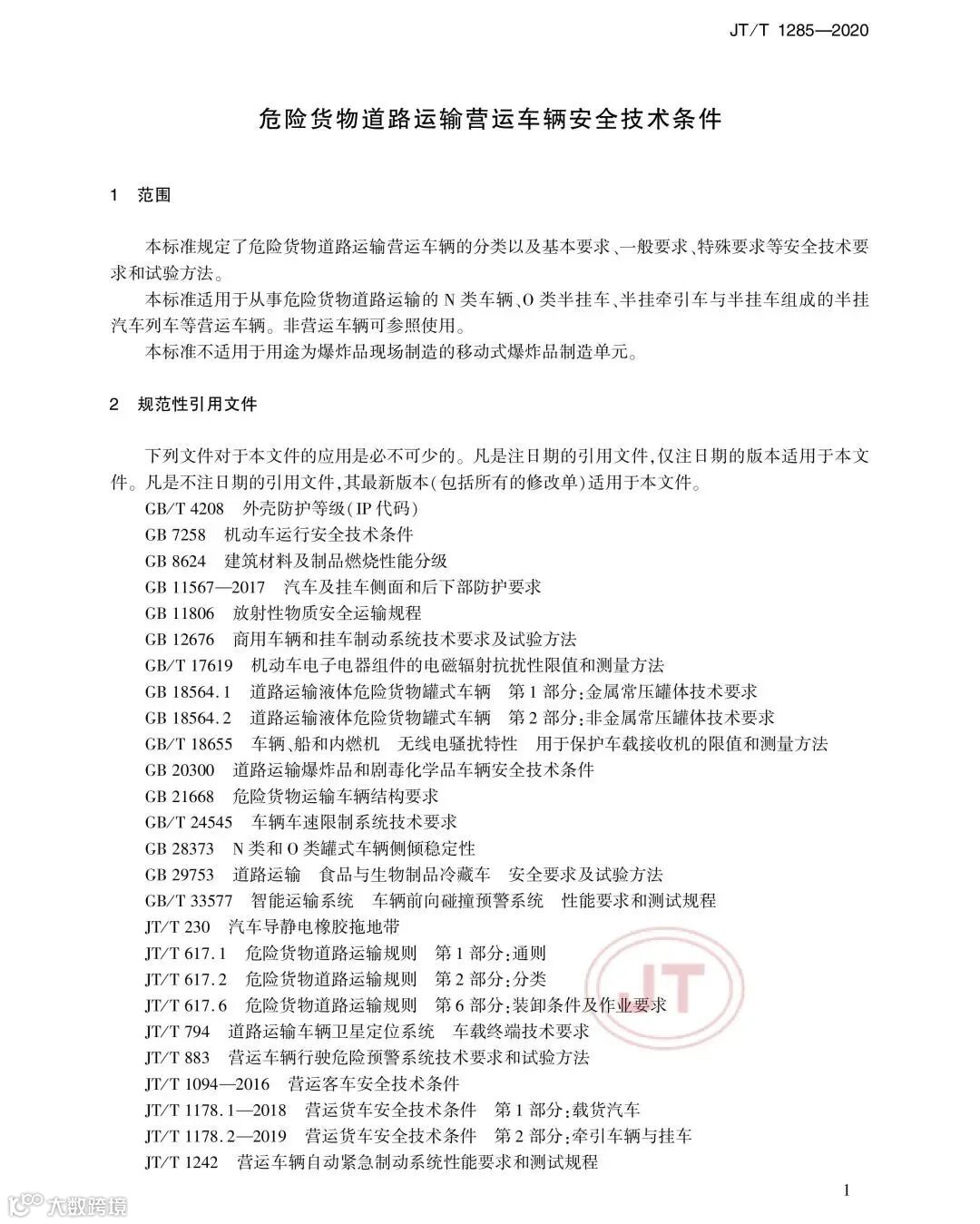导读:4月1日起,危险货物道路运输营运车辆安全技术条件标准将正式实施