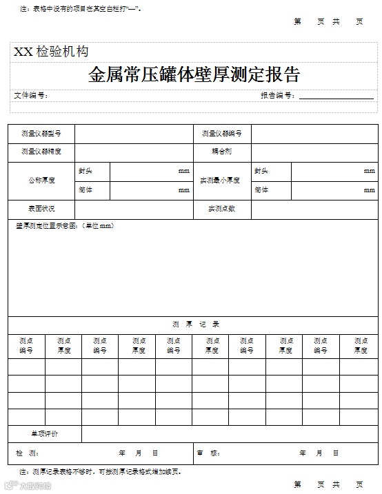 4.6.1 壁厚测定一般采用超声测厚方法。测定位置应当有代表性,且有足够的测点数。测定后标图记录,对异常测厚点做详细标记。