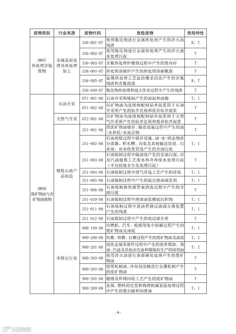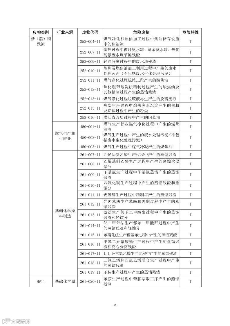 其中,第 1-3 位为危险废物产生行业代码,第 4-6 位为危险废物顺序代码,第 7-8 位为危险废物类别代码。