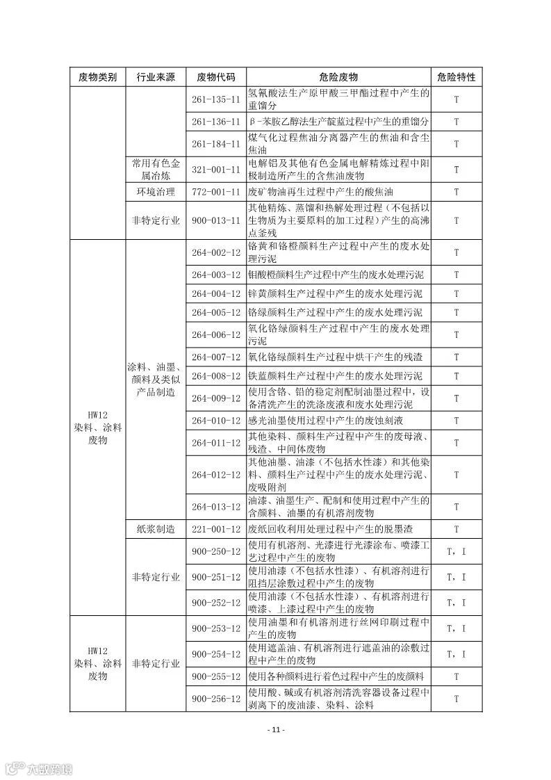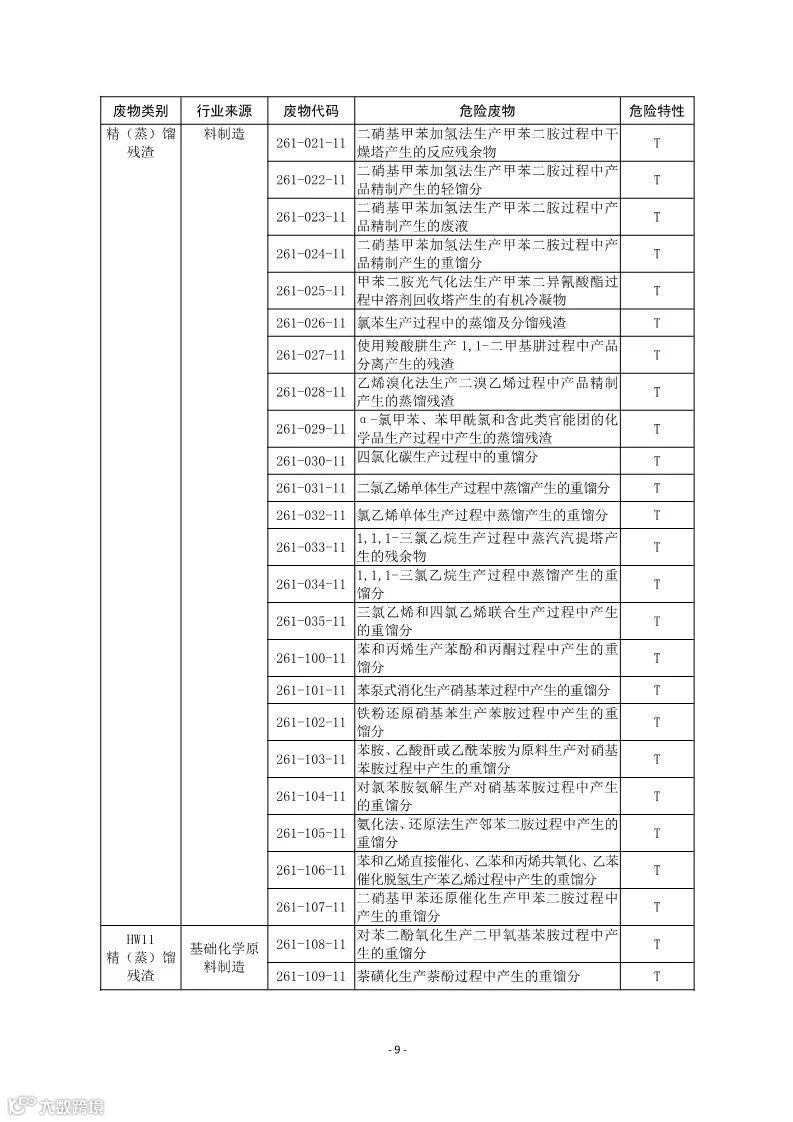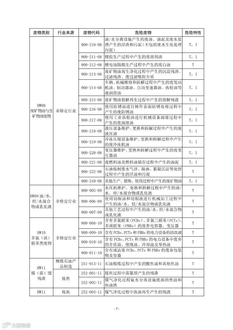 (二)行业来源,是指危险废物的主要产生行业。