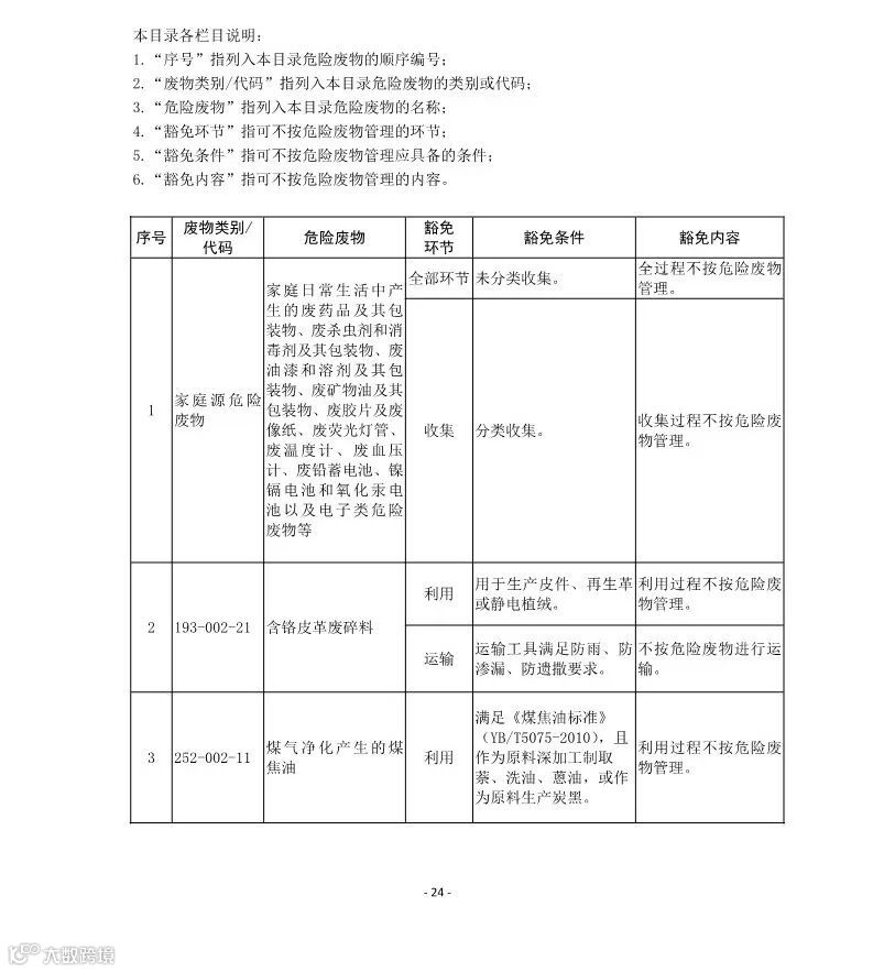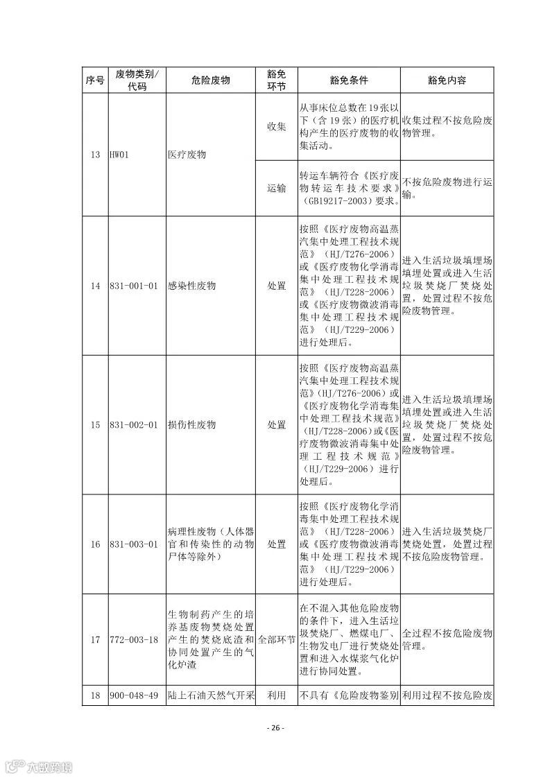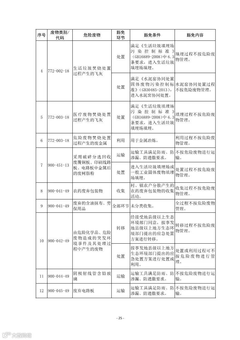 第五条:列入本名录附录《危险废物豁免管理清单》中的危险废物,在所列的豁免环节,且满足相应的豁免条件时,可以按照豁免内容的规定实行豁免管理。