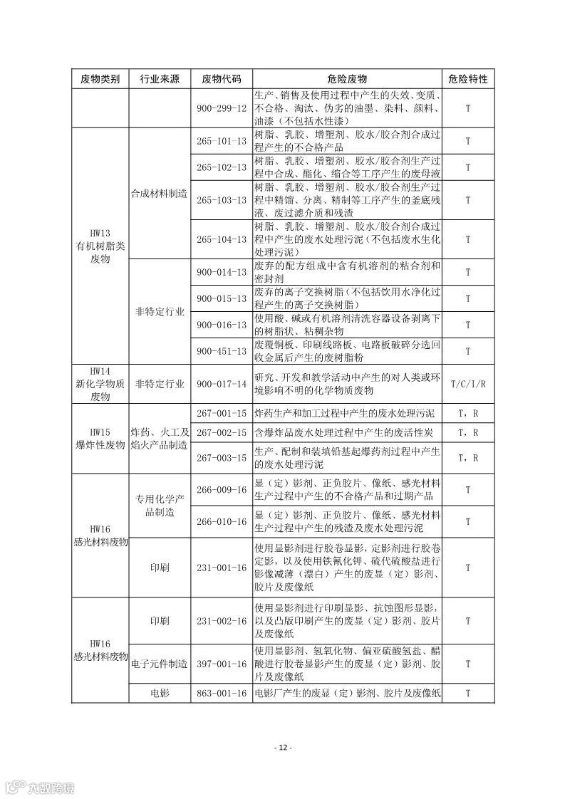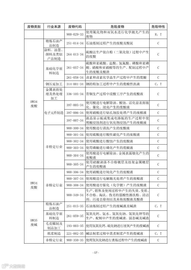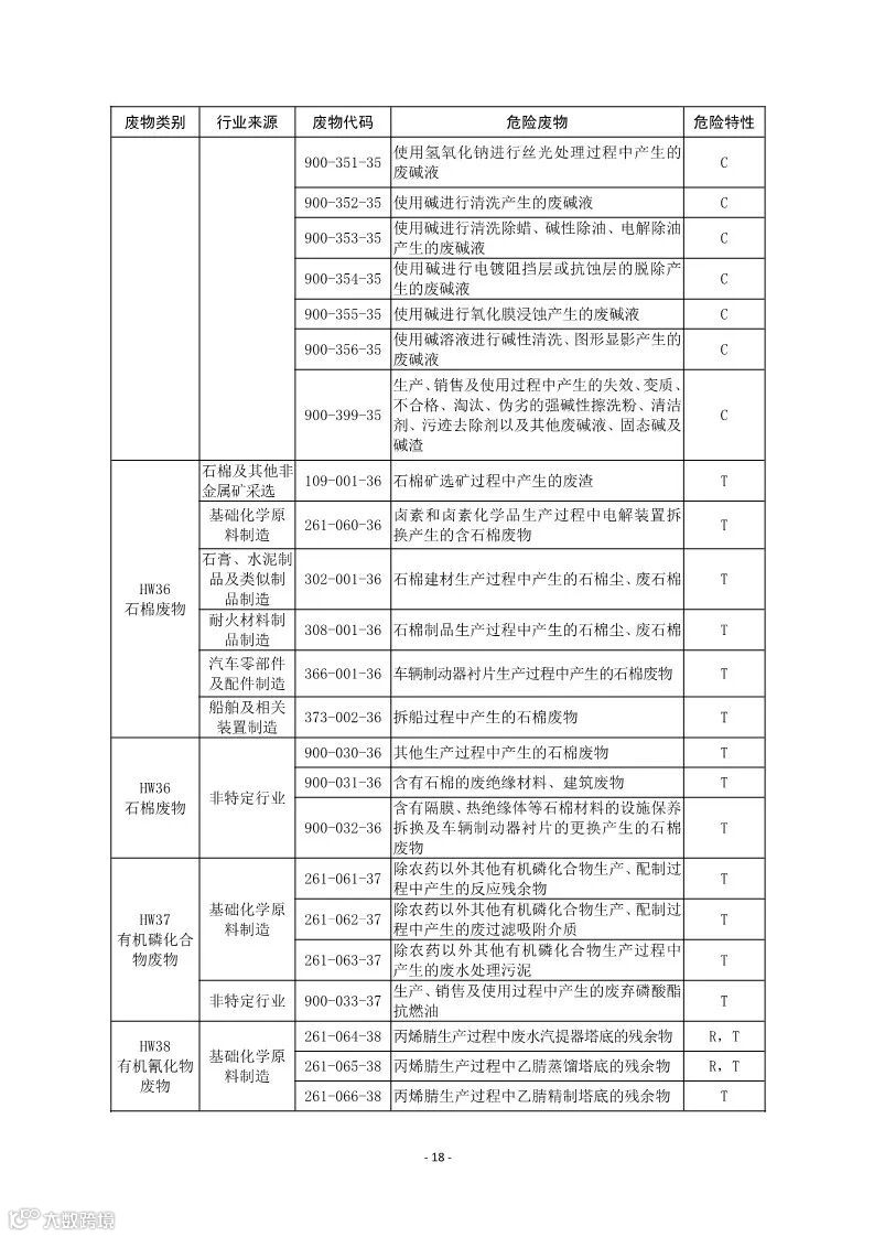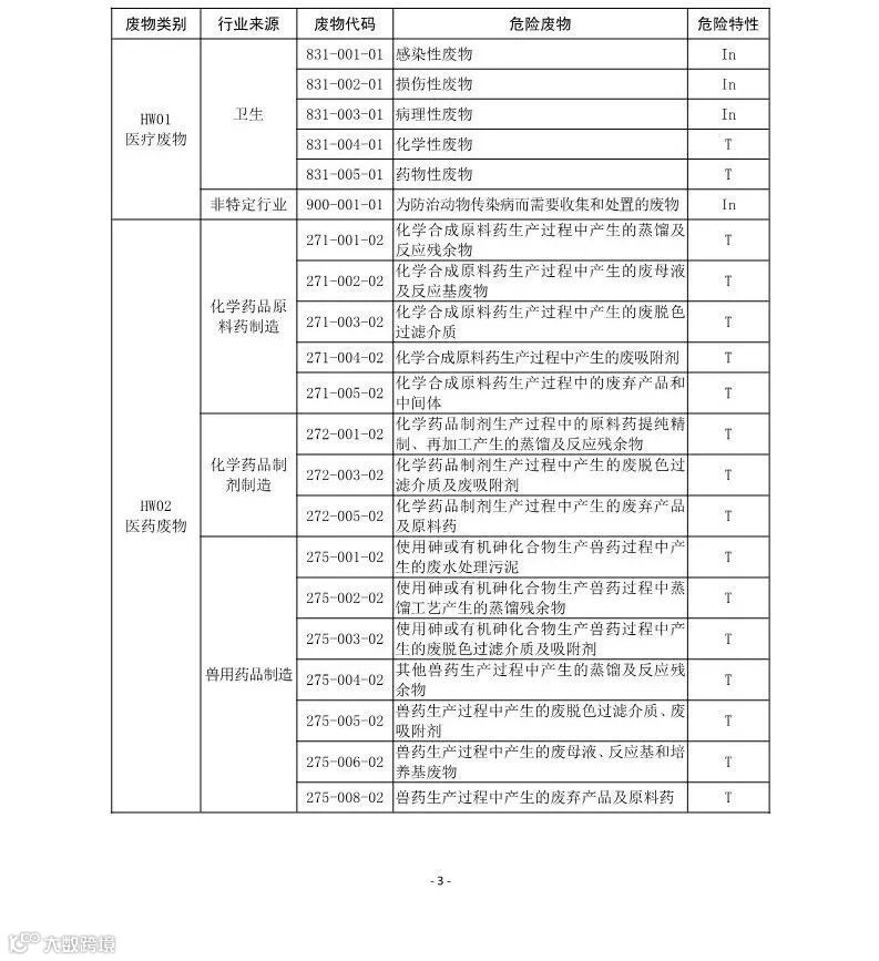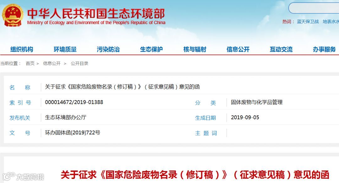 为贯彻落实《中华人民共和国环境保护法》和《中华人民共和国固体废物污染环境防治法》,加强危险废物环境管理,生态环境部组织编制了《国家危险废物名录(修订稿)》(征求意见稿)。详情如下: