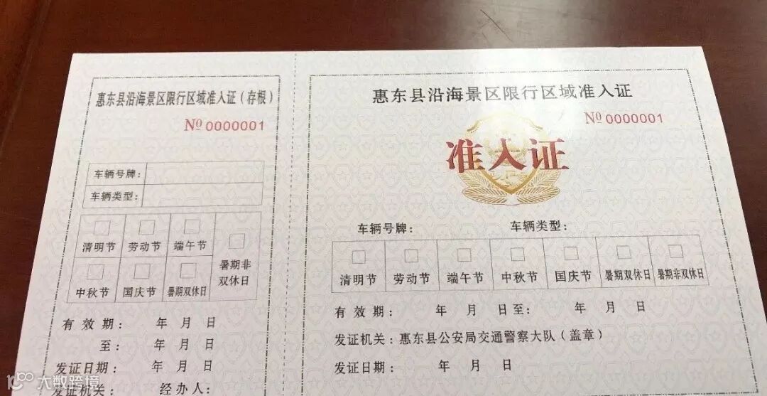 《惠东县沿海景区限行区域准入证》