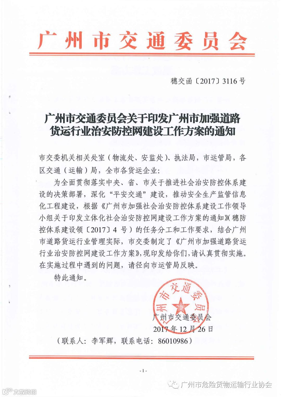 关于印发广州市加强道路货运行业治安防控网建设工作方案的通知