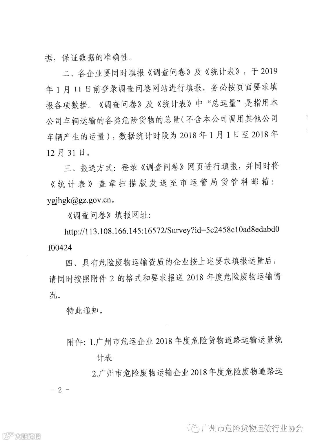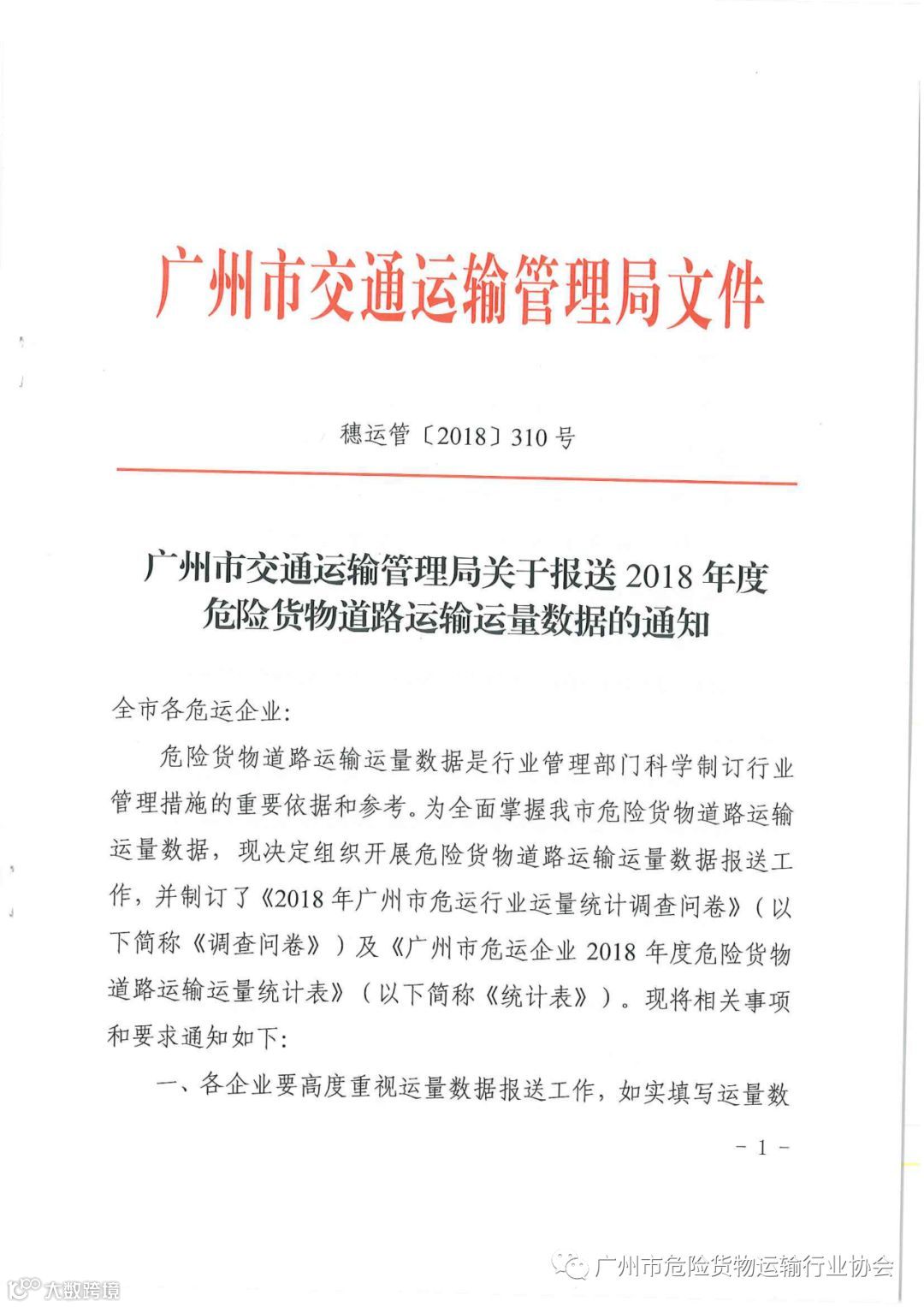 导读:关于报送2018年度危险货物道路运输运量数据的通知