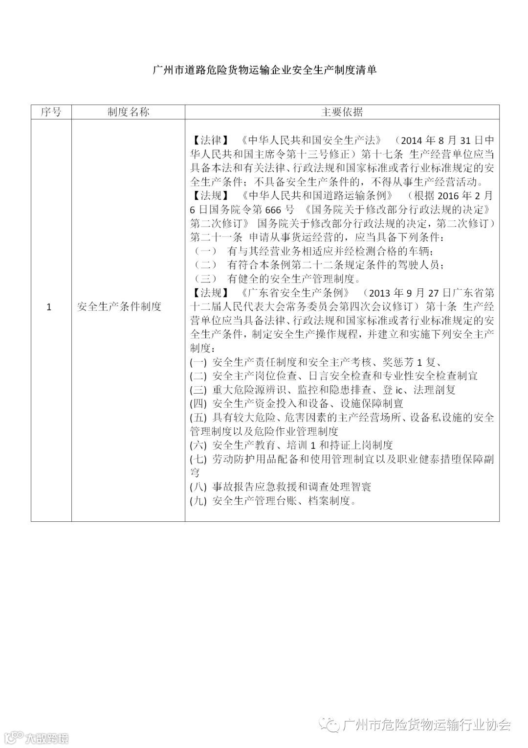 导读:广州市道路危险货物运输企业安全生产制度清单