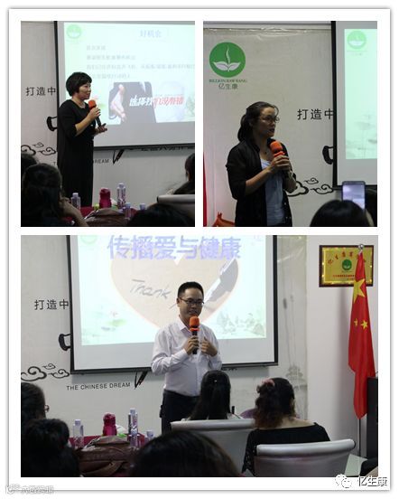 现场气氛热烈,三位家人上台分享自己的受益案例。 第一位是广州花都的店家吴小姐分享:因为寒湿膏,自己腰椎增生解决,同时让她走上了养生行业,开了养生馆。老公鼻咽癌,通过寒湿膏配合各方面指标慢慢正常,一家都受益者,顾客更是如此。(亿生康公众号9月公布她的自白分享)第二位是中山的店家黄小姐分享:自己及家人受益的过程,以及给顾客做的效果。第三位是来自四川泸州土主利民医院的刘院长分享:自己在这么多年临床中,尽量不给患者开打点滴药物,就用寒湿膏。他呼吁临床医生真的该好好应用排寒湿的寒湿膏,帮助更多人少吃药,少住院,少走弯路,少花钱。