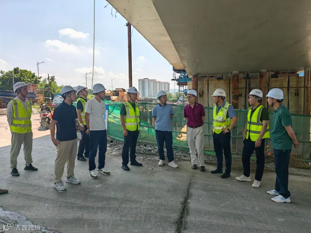 8月8日,广州市道路养护中心南城养护所党总支书记陈怀锋带队到道路研究院诚信公司“代建+监理”一体化实施项目国道G324线雁塔大桥拆除重建工程开展项目管理调研交流。广州市增城区交通运输局党组书记、局长黄彦,广州市增城区道路养护中心主任潘双平,项目参建单位主要管理人员等参与调研交流。
