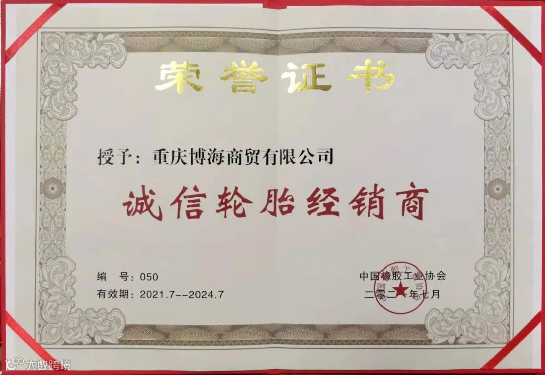 会议现场发布2021年度诚信轮胎经销商名单,来表彰和肯定诚信经营的轮胎代理公司。重庆博海商贸有限公司等10家轮胎经销商获此殊荣。