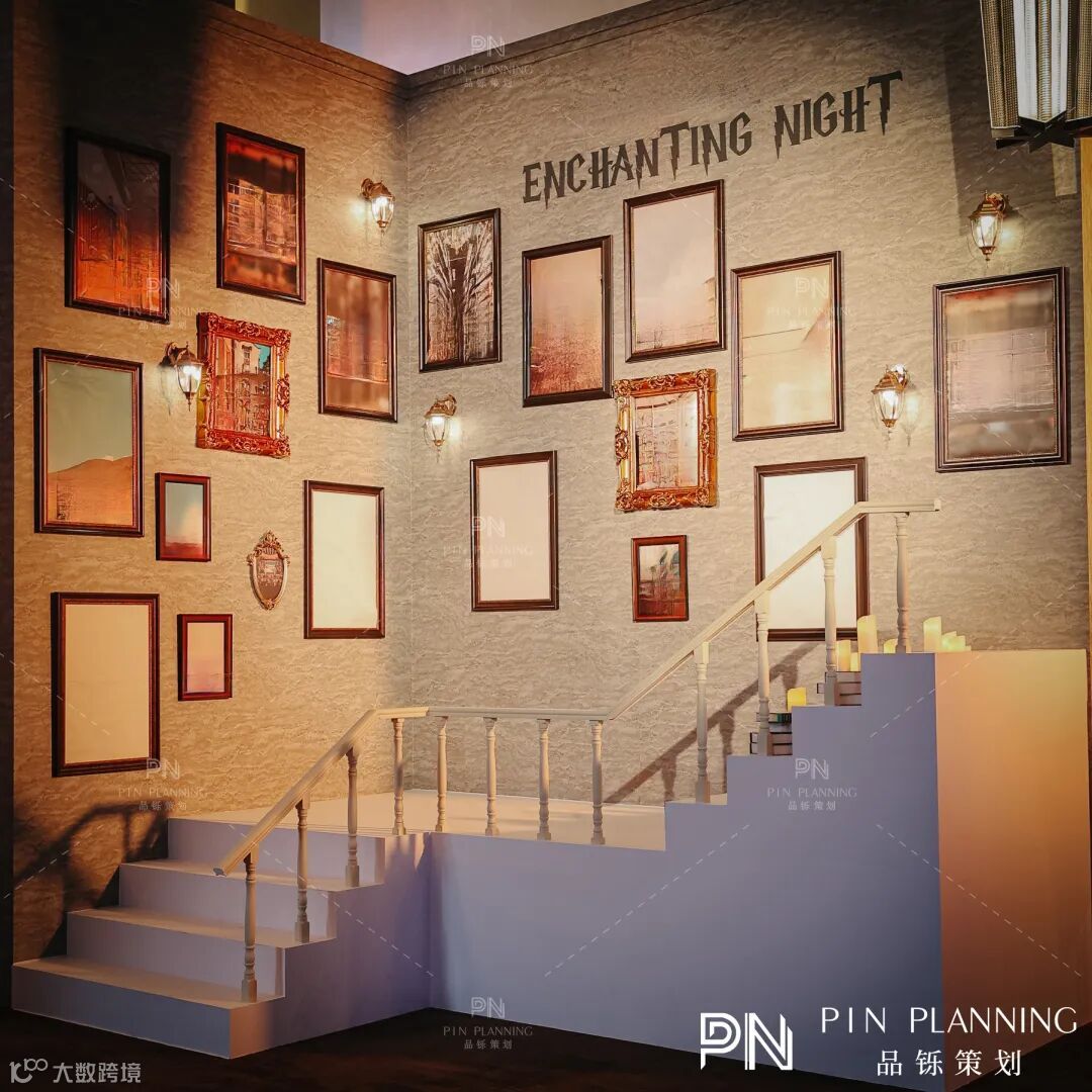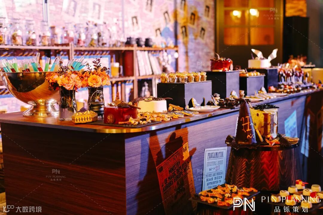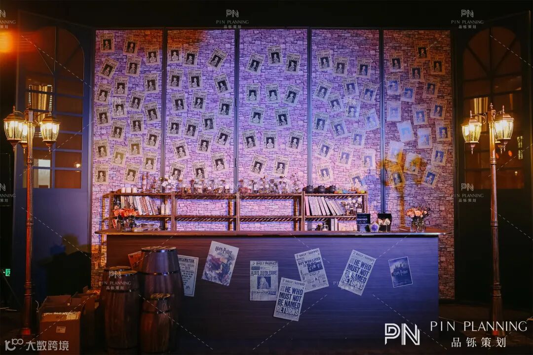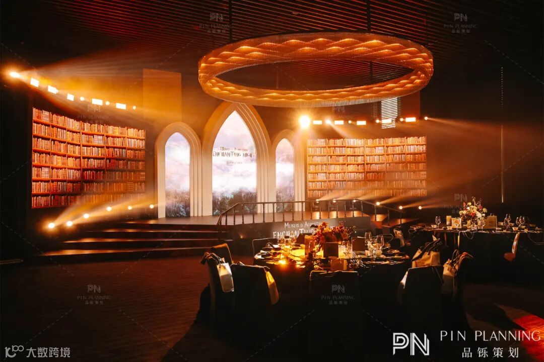 整个宴会厅用充满魔法的暖黄橙氛围灯光