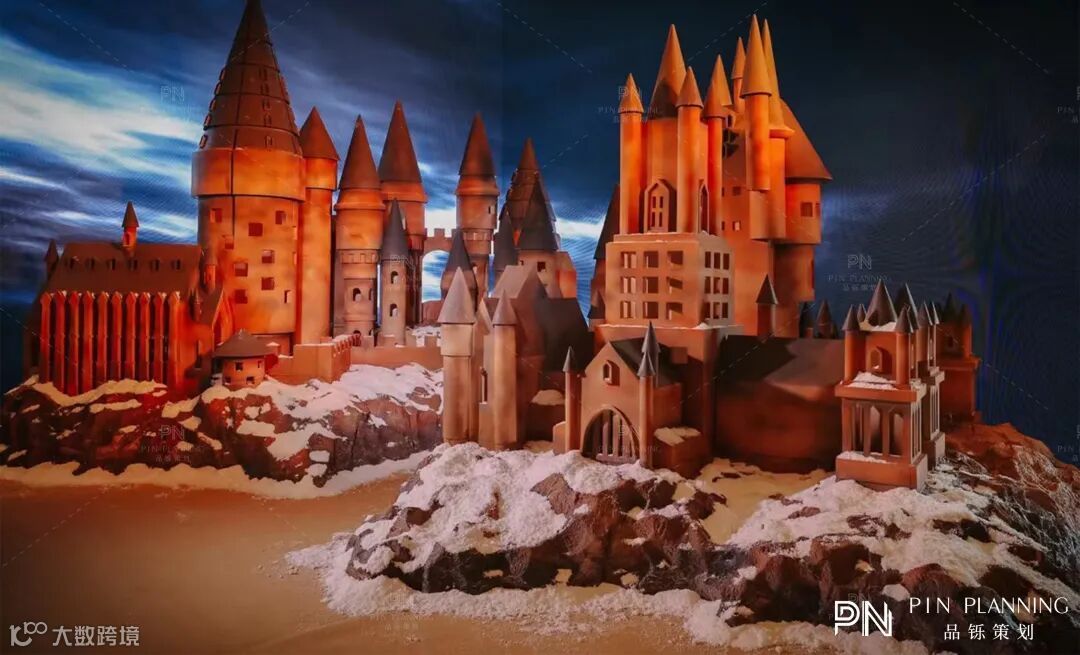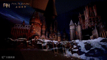 真实还原了城堡在雾气升腾的黑湖边、灯火通明的塔楼
