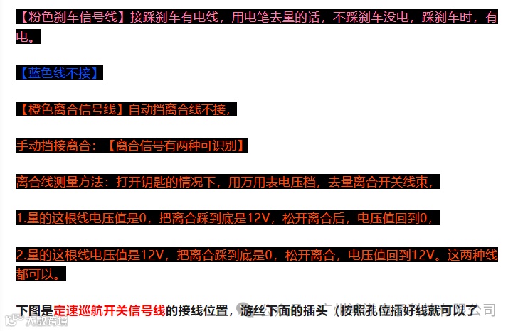 接下来安装定速巡航模块,先看一下模块接线图解。