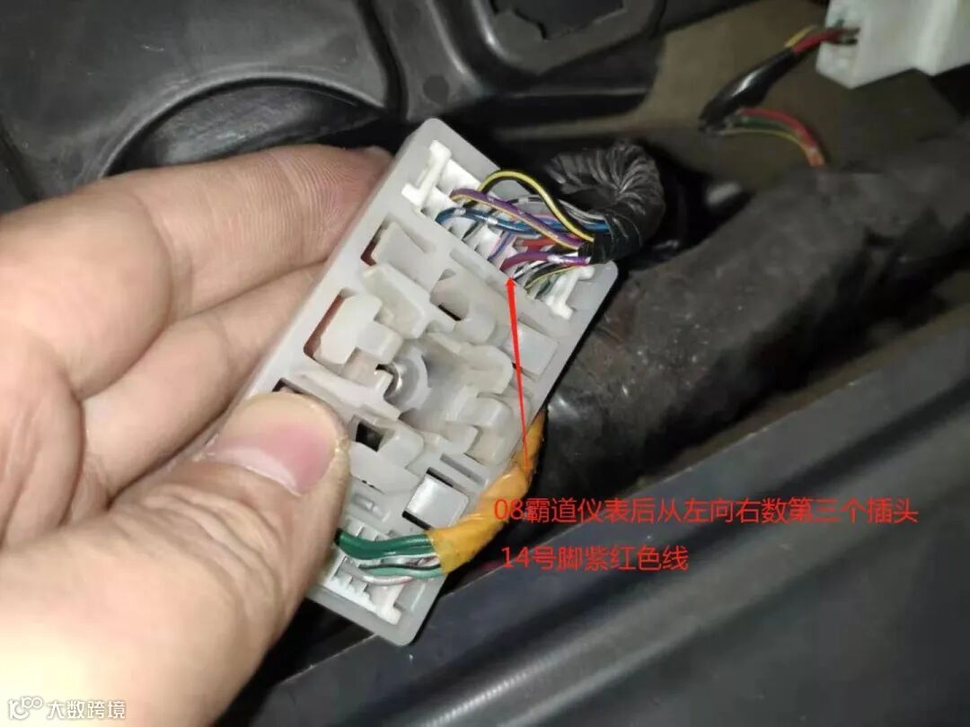 下图是车速信号线接线位置,插头在仪表后面的插头(拆开仪表找到插头把线接上去就行)注:下图是08年霸道的线位