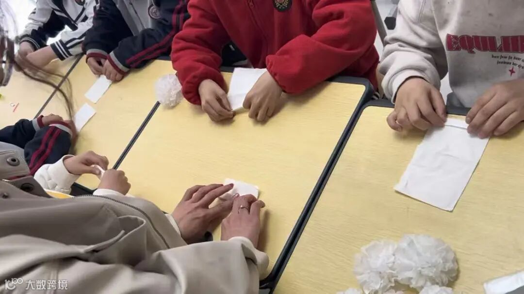 随后,手工制作环节拉开序幕。照管员们示范用纸巾、细铁丝制作小白花,孩子们兴致盎然、全神贯注。稚嫩的小手认真折叠、剪裁,虽然动作略显生疏,却每一步都充满了敬畏。在老师的耐心指导和同伴间的互帮互助下,一朵朵洁白素雅的小白花在指尖缓缓成型。孩子们手捧洁白的小花,整齐列队,低头默哀致敬。那一朵朵轻盈的小白花,承载着孩子们最真挚的敬意,穿越了时空,连接起对革命先辈的深深缅怀。