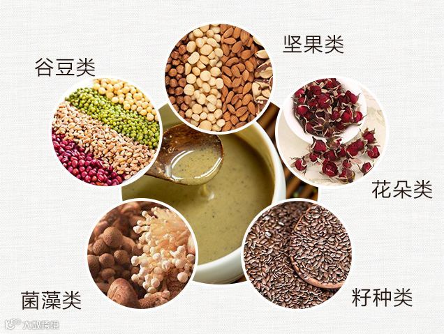 君:由多种粮谷和豆类给成,含有丰富的蛋白质与碳水化合物;