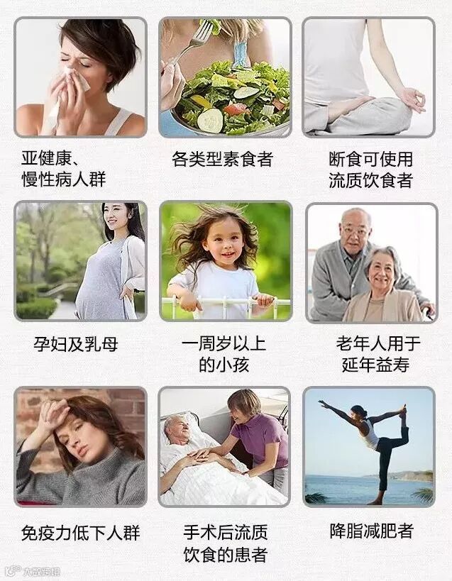 比如:常素人群、体虚免疫力低下人群、亚健康人群、慢性病人群