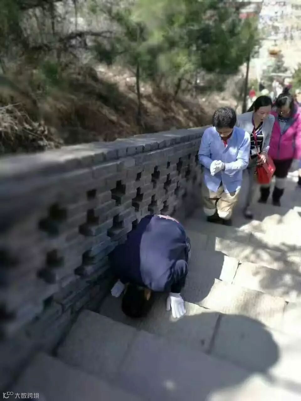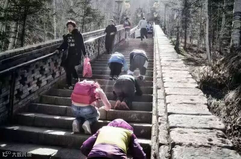 4月29日,文殊菩萨圣诞。我们三步一拜上黛螺顶,1080个台阶。妈妈与父亲说:“来了你就要拜啊!”父亲只是笑笑,集合现场买护膝装备,带上手套,护好膝盖,整装待发。在人潮拥挤的阶梯里,有人上行,有人下行,有人一步一拜,有人三步一拜,有人大拜(五体投地),有人摆摊,有人拍照,有人·····