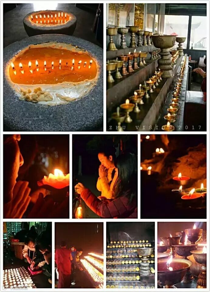 钻洞过后我们开始在佛母洞供灯,看着一盏盏灯被点亮,照耀着母亲的脸,不知道为什么,那一刻突然很感动,灯——不仅仅带给人光明,还有无限的温暖,温暖了他人也温暖了自己。