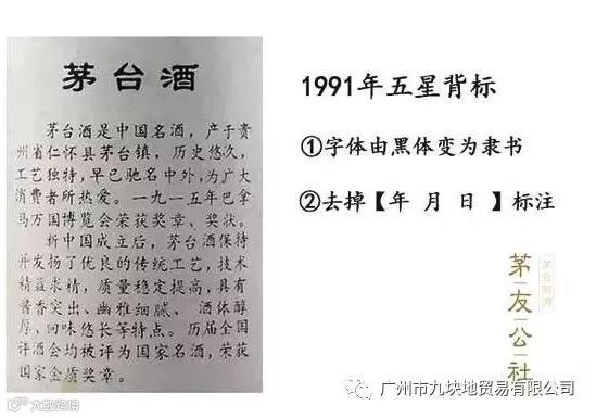 由于喷码技术的使用,1996年五星茅台背标取消了生产日期、批号、食品标签准印证信息。