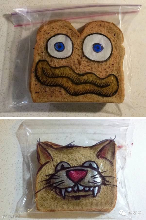 David说他某天早上为他的孩子做早餐时,突然就有了这个灵感。他看到了柜子上的记号笔,于是用记号笔在三明治袋子上作起画来。5年了,他已经在1100多个袋子上画了画,这一数字仍在增加。