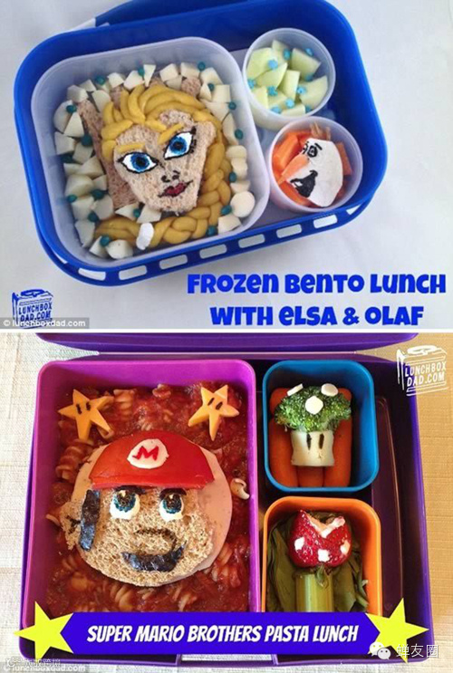 Beau Coffron是三藩市一名作家,他每天都会为他那读一年级的女儿Abigail创造可食用的艺术。从被冰雪奇缘和提线木偶所激发灵感的三明治到假日主题的零食,他创作的午餐盒毫无疑问会引得其他孩子的嫉妒。