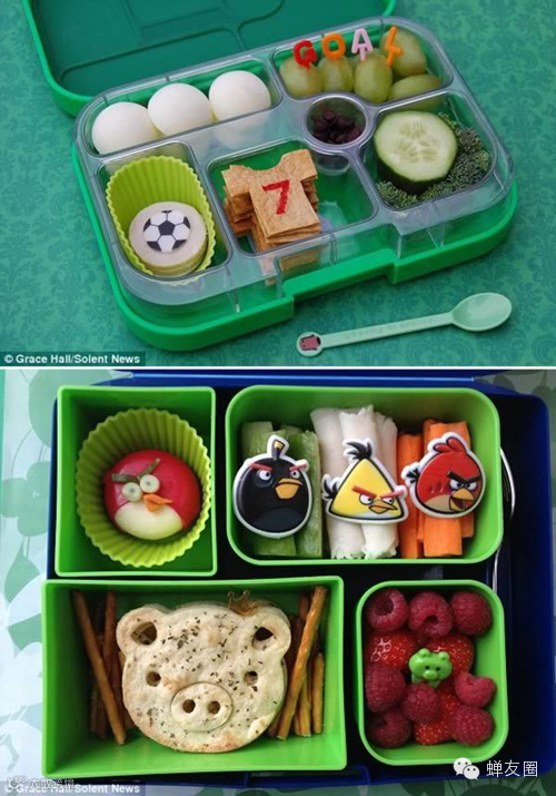 在一些刀具和模具的帮助下,这名做过会计的母亲在制作成百上千的午餐时,将三明治变成了蜘蛛侠、煮硬了的蛋变成了绵羊,她还把瓜变成了复活节小鸡。她的博客上公布了这些制作过程,拥有了7500多名追随者。