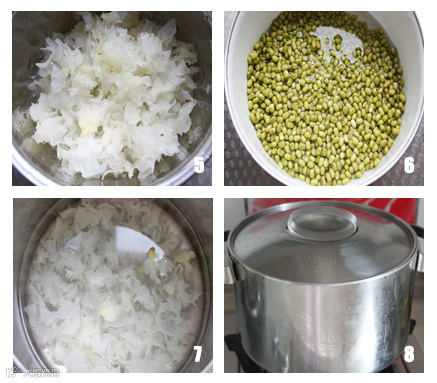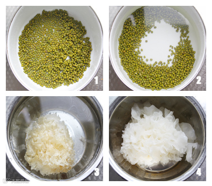 2、天热时浸泡绿豆和银耳要放在阴凉地方,偶是为了省事泡一夜后早上做的,实际泡几个小时也可。