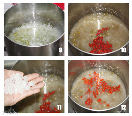 材料:绿豆100克 银耳20克 枸杞20克 水适量