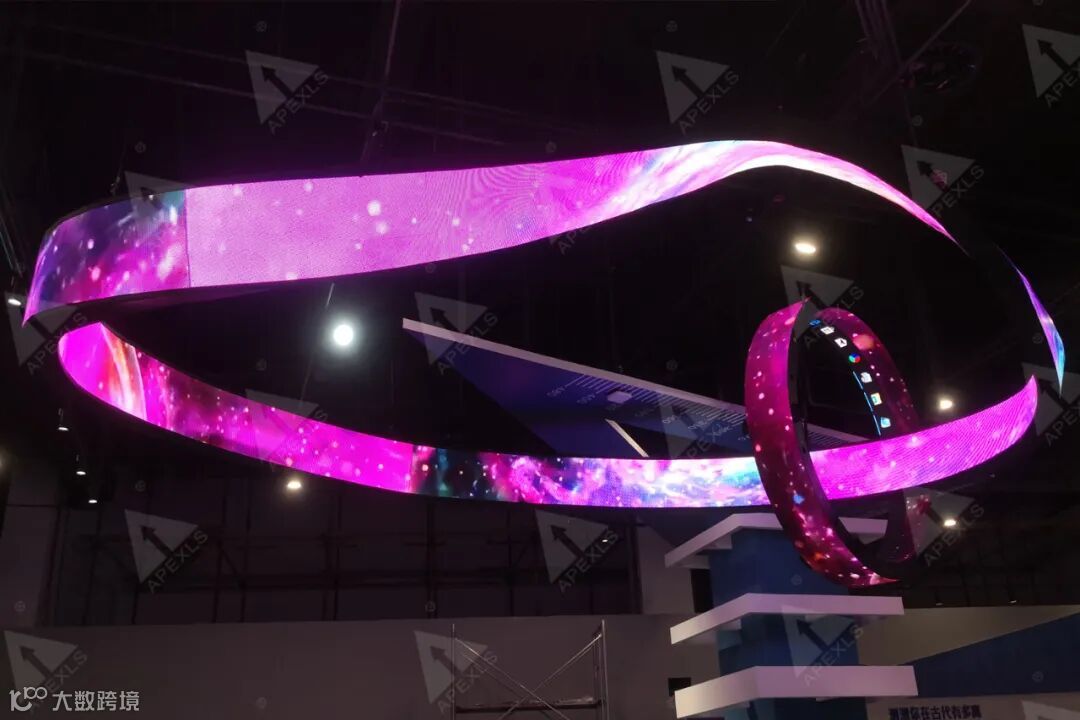 严格来说,柔性屏是 “可实现异形效果的基础产品”,其屏体可弯曲、折叠,能适应曲面、不规则平面等多种安装场景,既可以拼接成弧形、波浪形,也能贴合圆柱、圆锥等立体结构。与固定造型的异形屏相比,柔性屏的灵活性更高,适合需要频繁调整形态的临时活动(如展会、舞台演出)。
