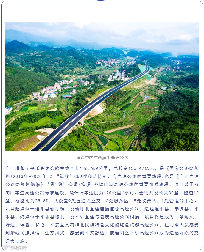 广西壮族自治区高速公路发展中心主任刘建阳、规建科副科长周诚,广西交通投资集团有限公司副总经理廉向东,广西新平高速公路有限公司董事长劳家荣,灌阳至平乐高速公路总承包部总经理王磊陪同。