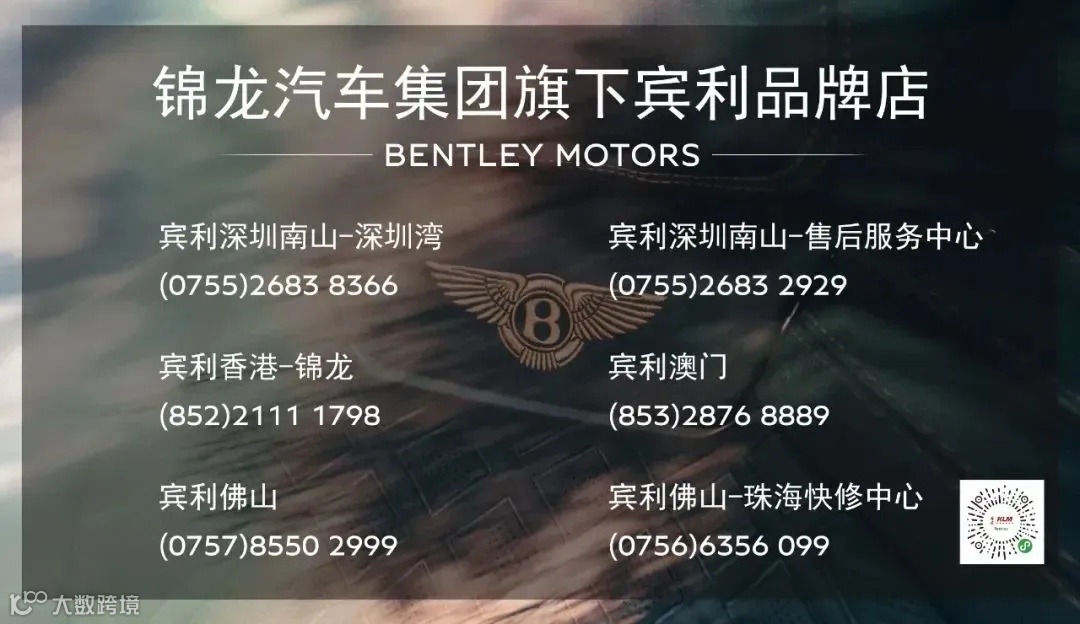 宾利深圳-南山是宾利汽车官方授权经销商,隶属锦龙汽车集团,2017年深圳南山开业。目前有海上世界与深圳湾展厅,以及宾利售后服务中心。贵宾专线:0755-2683 2929