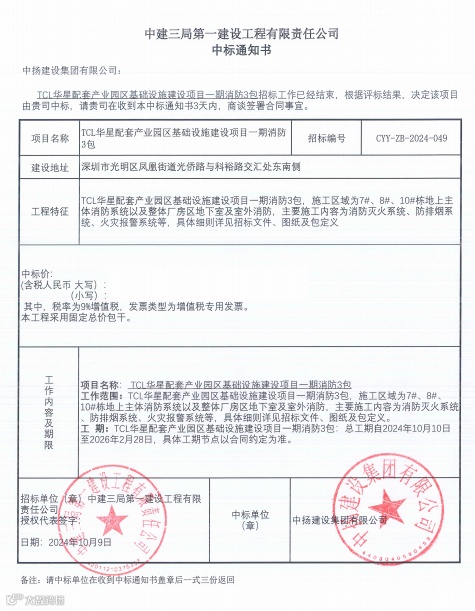 中扬集团接连中标深圳前湾燃机电厂主厂房及TCL华星配套产业园区基础设施建设工程项目!!!
